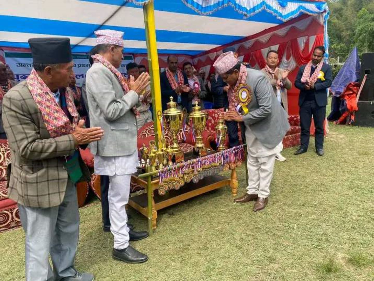 वसन्त पन्चमी मेला पुरुष भलिबल प्रतियोगिताको उपाधी आयोजक A लाई