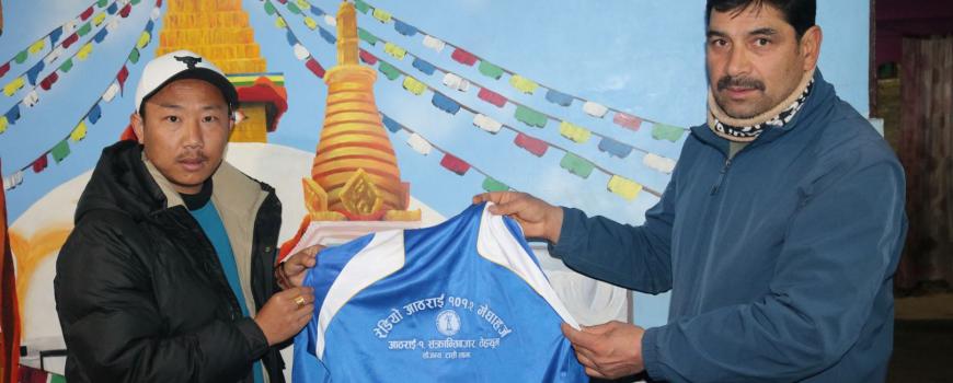 विश्व रेडियो दिवसको दिन समाजसेवी टासी लामाद्वारा रेडियो आठराईलाई लोगो अंकित जर्सी प्रदान